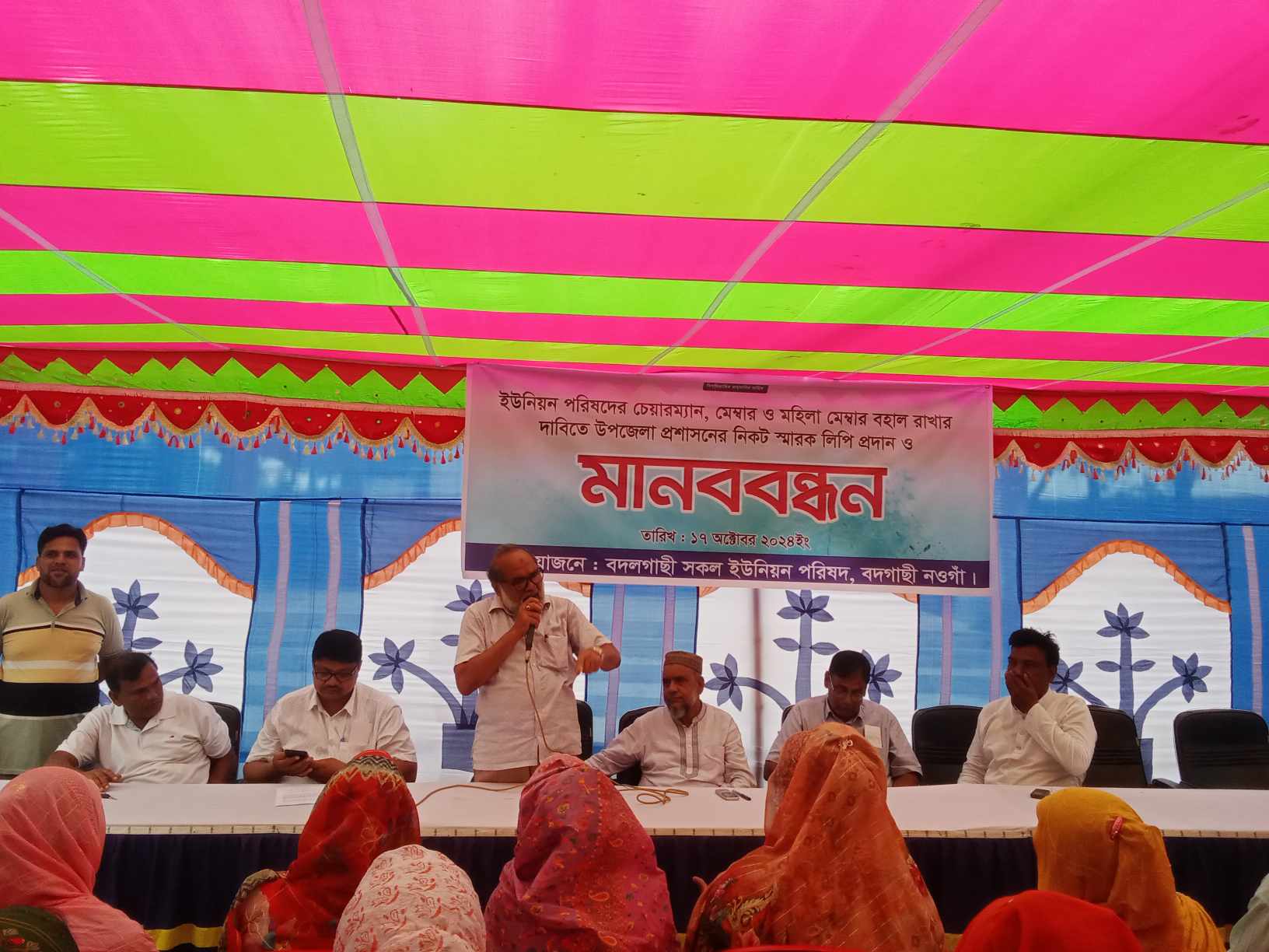বদলগাছীতে বৈষম্য বিরোধি ছাত্রের পরিচয়ে মাইক কেড়ে নিয়ে চেয়ারম্যান মেম্বারদের শান্তিপূর্ন সভা পন্ড