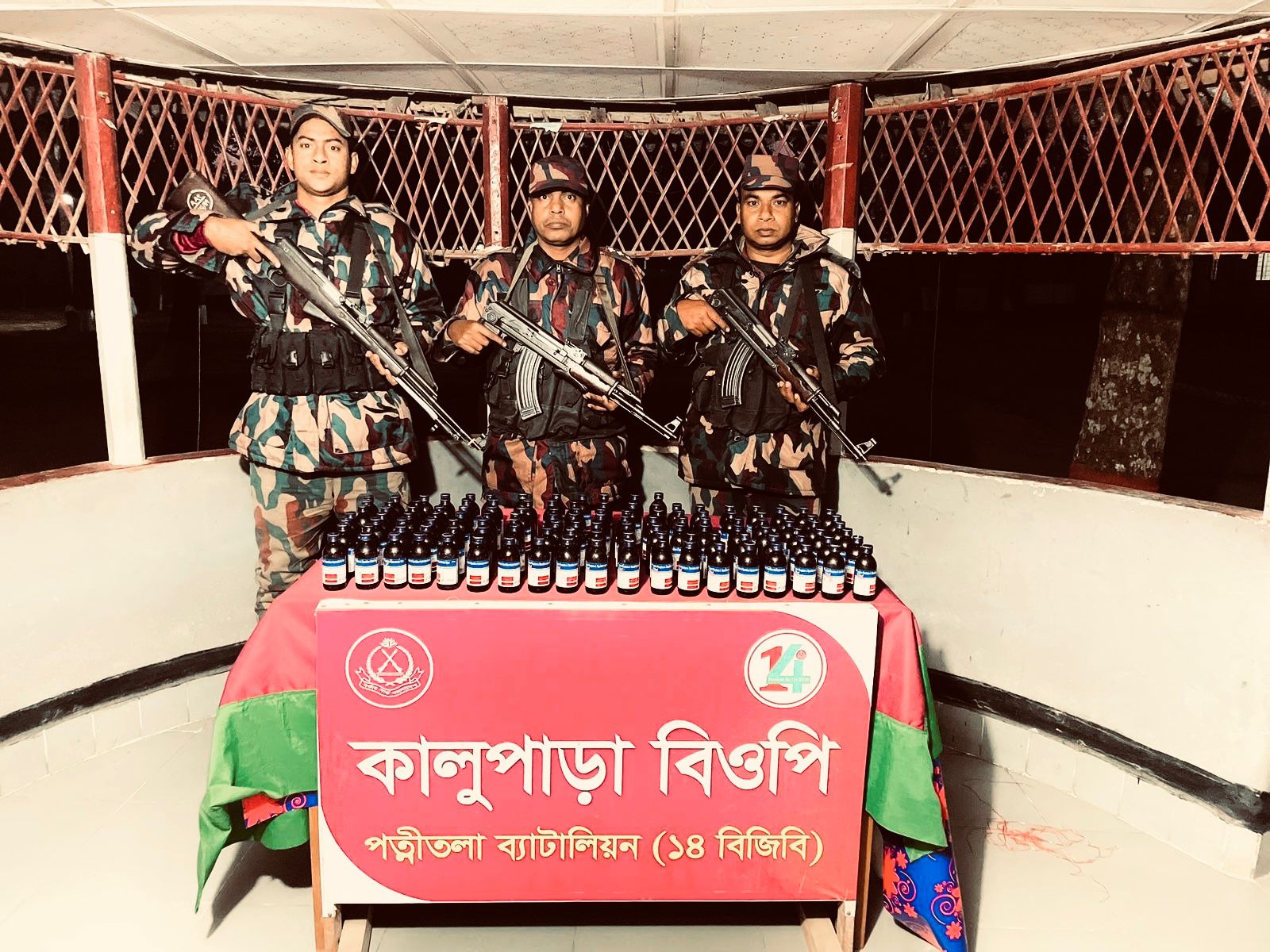 ধামইরহাট সীমান্তে বিপুল পরিমাণ মাদক দ্রব্য আটক করেছে। ১৭ জানুয়ারি ২০২৬ তারিখ ০২২০ ঘটিকায় চকিলাম বিওপি’র টহল কমান্ডার হাবিলদার মোঃ মেহেদী হাসান এর নেতৃত্বে একটি বিশেষ টহলের মাধ্যমে সীমান্ত পিলার ২৬৬/১-এস হতে আনুমানিক ২০০ গজ বাংলাদেশের অভ্যন্তরে চকশব্দল গ্রামের মাঠের সরিষা ক্ষেতের মধ্যে অভিযান পরিচালনা করে ১৪,৬০০ পিস নেশাজাতীয় ট্যাপেন্টাডল ট্যাবলেট আটক করতে সক্ষম হয়। আটককৃত মাদকদ্রব্য ধামইরহাট থানা পুলিশের নিকট হস্তান্তর কার্যক্রম প্রক্রিয়াধীন। যাহার সিজার মূল্য-২৯,২০,০০০/- টাকা। ১৭ জানুয়ারি ২০২৬ তারিখ ০৪৩০ ঘটিকায় কালুপাড়া বিওপি’র টহল কমান্ডার হাবিলদার মোঃ বাদশা আলমগীর এর নেতৃত্বে একটি বিশেষ টহলের মাধ্যমে সীমান্ত পিলার ২৭২ এমপি হতে আনুমানিক ৬০০ গজ বাংলাদেশের অভ্যন্তরে উস্তমবাদ এলাকায় পাঁকা রাস্তার উপর অভিযান পরিচালনা করে মালিকবিহীন অবস্থায় ১২৬ বোতল নেশাজাতীয় কাশির সিরাপ আটক করতে সক্ষম হয়। আটককৃত মালামাল ধামইরহাট থানা পুলিশের নিকট হস্তান্তর কার্যক্রম প্রক্রিয়াধীন। যাহার সিজার মূল্য-৫০,৪০০/-টাকা।নওগাঁ ও জয়পুরহাট সীমান্তবর্তী দায়িত্বপূর্ণ এলাকায় অবৈধ সীমান্ত পারাপার, দেশের আইন-শৃঙ্খলা রক্ষা এবং আন্তঃসীমান্তীয় সকল অপরাধ কার্যক্রমের বিরুদ্ধে সর্বাত্বক অভিযান অব্যাহত রাখার অঙ্গিকার ব্যক্ত করেছেন অধিনায়ক, পত্নীতলা ব্যাটালিয়ন (১৪ বিজিবি)।