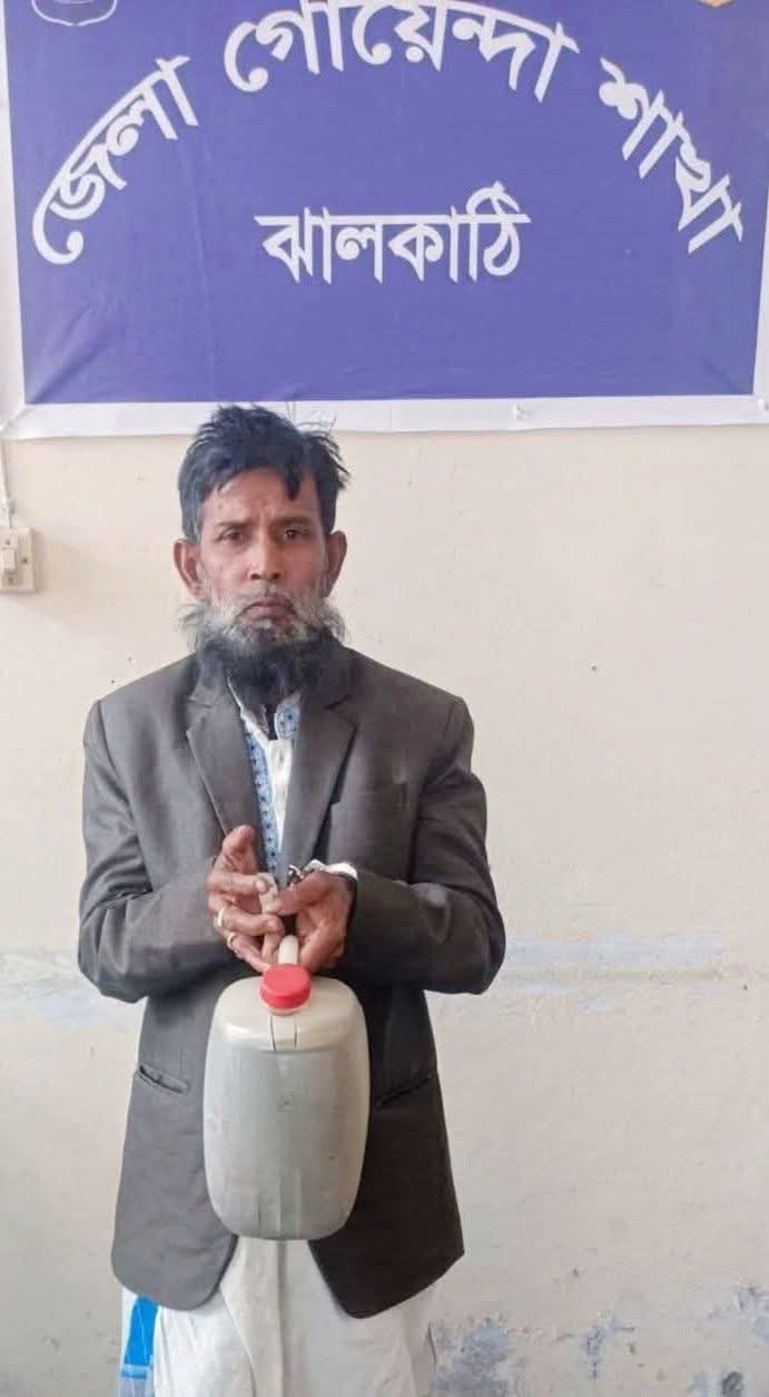 ঝালকাঠিতে ৬ লিটার দেশীয় মদসহ মাদক ব্যবসায়ী আটক।