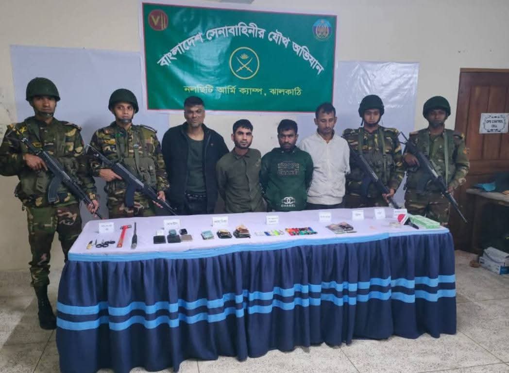 নলছিটিতে যৌথবাহিনীর অভিযানে আটক ৪, মাদক ও নগদ টাকা উদ্ধার