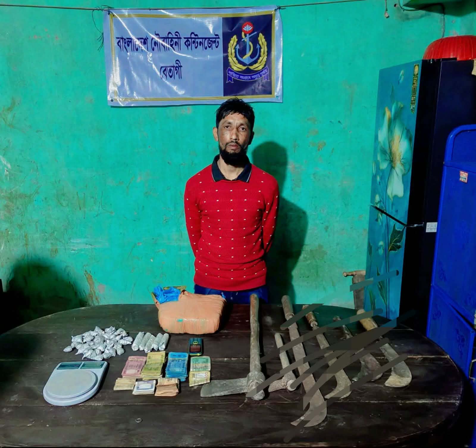 বেতাগীতে নৌবাহিনীর ঝটিকা অভিযান, নিয়ামতি বাজার থেকে গাঁজা ও অস্ত্রসহ মাদক কারবারি আটক