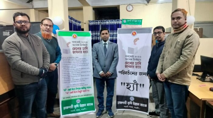 মোঃ আব্দুল মজিদ নওগাঁ প্রতিনিধি।। আসন্ন গনভোটকে সামনে রেখে রাকাব নওগাঁ জোনের আওতাধীন সকল শাখায় ‘হ্যাঁ’ ভোটের পক্ষে ব্যাপক প্রচারণা কার্যক্রম পরিচালিত হচ্ছে। মাঠপর্যায়ে সদস্যদের সঙ্গে মতবিনিময়, সচেতনতামূলক আলোচনা