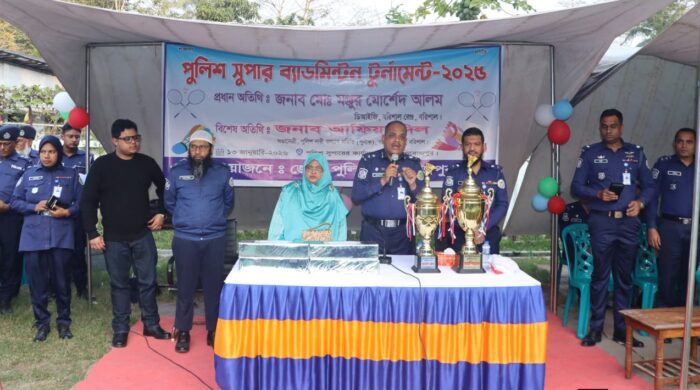 পিরিজপুর জেলা প্রতিনি।। পিরোজপুরে ১৩ জানুয়ারি ২০২৬ খ্রিষ্টাব্দ মঙ্গলবার পিরোজপুর জেলা পুলিশ সুপারের কার্যালয়ের ব্যাডমিন্টন প্লে গ্রাউন্ডে জেলা পুলিশ পিরোজপুর আয়োজিত পুলিশ সুপার কাপ ব্যাডমিন্টন টুর্নামেন্ট এর ফাইনাল খেলা পুরস্কার বিররণী