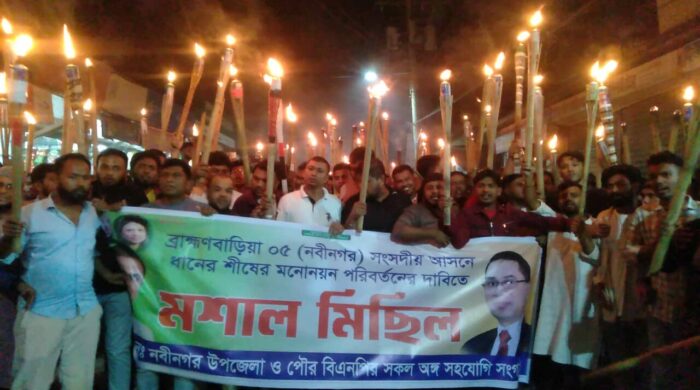 মো. নাছির চৌধুরী নবীনগর (ব্রাহ্মণবাড়িয়া) প্রতিনিধি : ব্রাহ্মণবাড়িয়া নবীনগরে বিএনপির মনোনয়ন পরিবর্তনের দাবীতে আজ শুক্রবার (২১/১১) সন্ধ্যায় আলিয়াবাদ গোল চত্বর হতে একটি মশাল মিছিল শহরের প্রধান প্রধান সড়ক পদক্ষিন করে নবীনগর