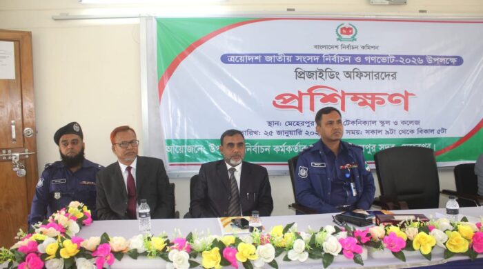 মেহেরপুর থেকে তুষার খান। অদ্য ২৫/০১/২০২৬ খ্রি. উপজেলা নির্বাচন কর্মকর্তার কার্যালয়, মেহেরপুর সদরের আয়োজনে মেহেরপুর সরকারি টেকনিক্যাল স্কুল এন্ড কলেজ, মেহেরপুর সম্মেলন কক্ষে ত্রয়োদশ জাতীয় সংসদ নির্বাচন ও গণভোট
